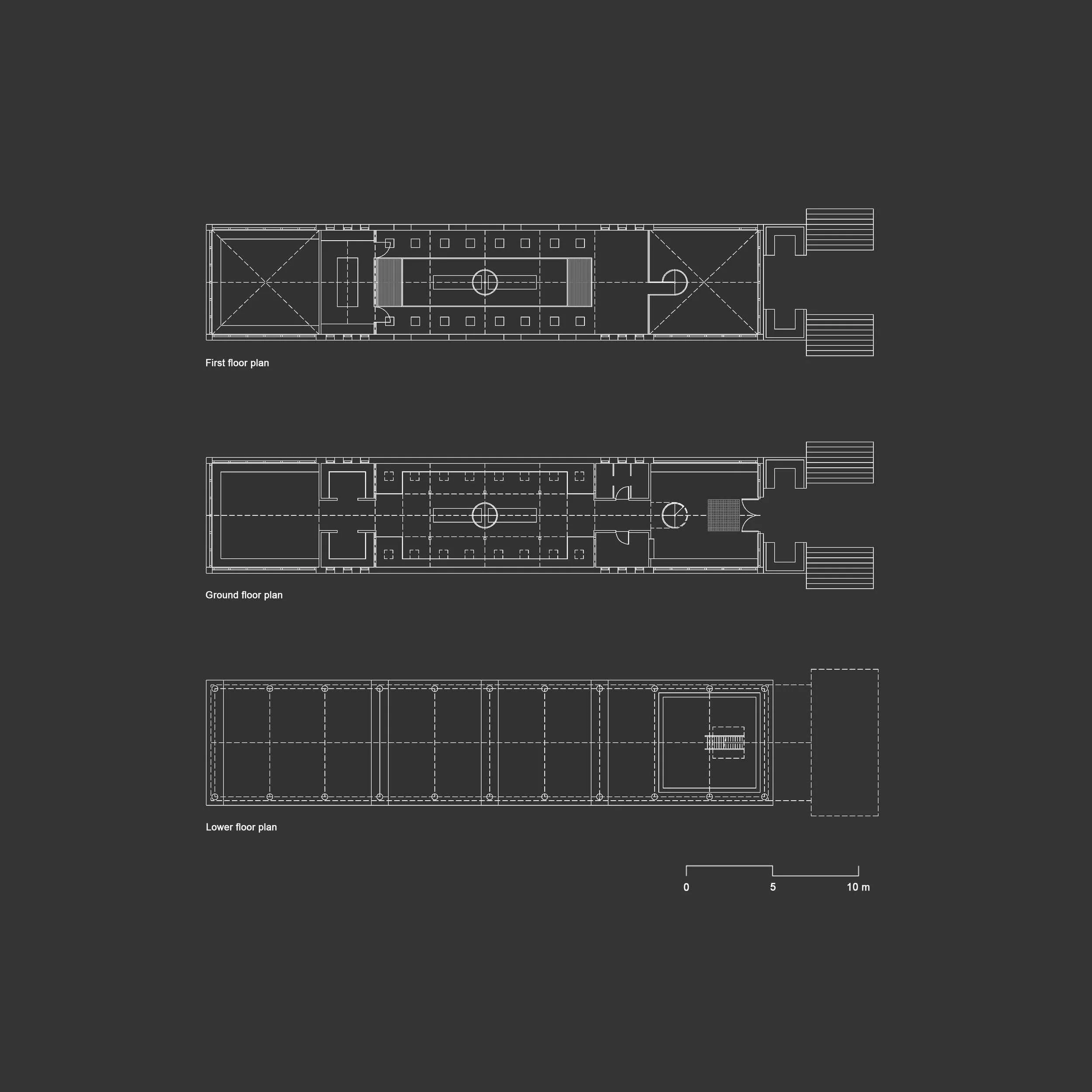 The Galician coastline is a constant dialectic between land and sea that becomes paradigmatic in the Rías Bajas, especially Arousa. This building was constructed deep in this estuary, as part of the promenade that links the ports of Vilagarcía and Carril. The construction lies perpendicular to the coast, dipping into the sea. Its elongated silhouette and classic image are intended to partly counteract the disturbing visual effect of a nearby apartment building, which has created a type of screen with a negative presence because of its poor quality and its height. This building has one floor and a half-floor, both rectangular, narrow and elongated, with a pitched roof resting on circular pillars to avoid hindering the movement of the sea. The spatial organisation runs along two axes: one horizontal, which provides views of the sea from the land through the building itself, and one vertical, which affords views of both the sea and the sky. The main material used is reinforced concrete, yielding a sturdy, monolithic structure that can stand up to the harsh environment in which it stands.