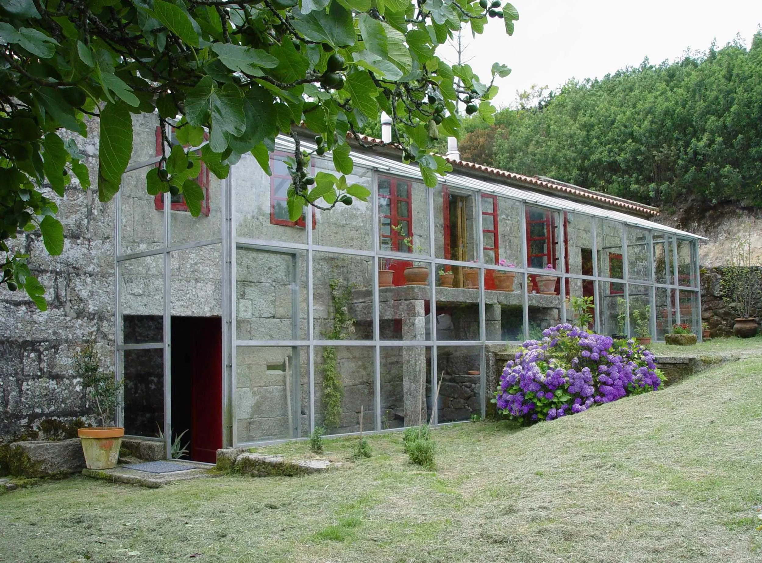 El encargo contemplaba la rehabilitación de una vieja construcción –que en su día albergó a una familia campesina, con sus correspondientes establos, bodega y almacén para útiles de labranza– en una casa-vivienda para una familia que, en principio, pensaba usarla como segunda residencia y acabó viviendo en ella permanentemente. Todo ello, además de lo ajustado del presupuesto y la voluntad del propietario en participar como autoconstructor, determinó la concepción del proyecto y el desarrollo de la obra, que se llevó a cabo con la colaboración de un cantero, un carpintero y un instalador, todos ellos vecinos del lugar. Como elementos arquitectónicos cabría señalar el aprovechamiento de casi todos los muros de piedra (unos de perpiaño y otros de mampostería), que se encintaron de nuevo y se pintaron en los interiores para quitarles frialdad y hacerlos más confortables y alegres, y la colocación de lucernarios en diversos puntos de la cubierta para permitir la entrada de luz en lugares estratégicos (cocina-comedor, pasillos, zona de lectura, estar, vestíbulo-jardín interior…). Además, se ha habilitado una gran galería adosada a la fachada que da a la huerta-jardín y que permite la estancia en el exterior de las fachadas de piedra. Esta galería está protegida de las inclemencias del tiempo (viento y lluvia) y permite tener abiertas las puertas y las ventanas de todas las estancias, con lo que se agranda el espacio interior y se hace posible la comunicación y la articulación del conjunto. Al igual que en las artes marciales orientales, en las que se aprovecha el impulso del contrario para derribarlo y vencerlo, aquí hemos aprovechado una parte sustancial de los valores heredados, rehabilitándolos y enriqueciéndolos con nuevos elementos espaciales, formales y materiales hasta lograr articular un nuevo conjunto arquitectónico en el que lo nuevo enriquece a lo anterior y viceversa, creando entre lo uno y lo otro sinergias y valores nuevos, positivos y complementarios.