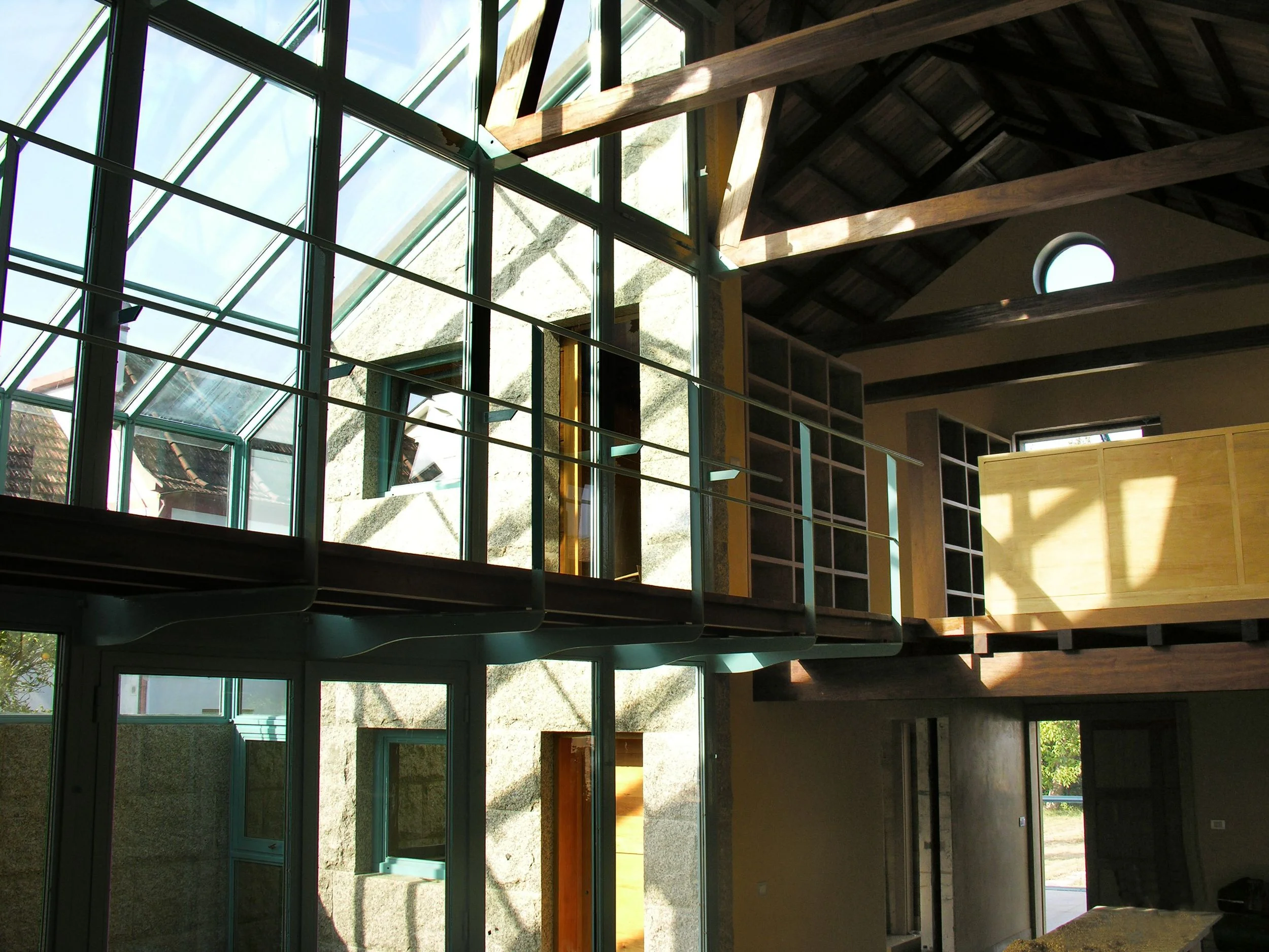 Una casa con galerías, invernadero, hogar, estanque, esculturas, espacios a doble altura,…. Una casa del humo con vistas a la Ensenada de Rande, en la que es posible compatibilizar la intimidad con la sociabilidad, disponiendo para ello de una gran variedad de espacios interiores, exteriores e intermedios, de diferentes tamaños, proporciones y situación.